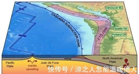 GPS站揭示了卡斯卡迪亚(Cascadia)下的活动,海底在北美下方滑动。板块界面被锁定在较浅的深度(阴影区域),但是我们看到反复出现的缓慢滑动事件(蓝色)解压缩了板块界面,从而产生了震颤(黑点)。